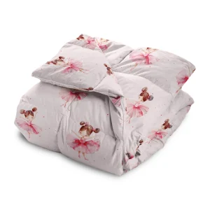 Πάπλωμα κούνιας από ύφασμα microfiber,100% πολυέστερ, εμπριμέ, με καπιτονάρισμα και παιδικό σχέδιο με μπαλαρίνες.