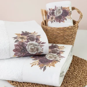 Σετ πετσέτες 2 τεμαχίων, προσώπου και χειρός, από ύφασμα φροτέ, πενιέ, 100% βαμβακερό, με ψηφιακή εκτύπωση.Διατίθεται σε 2 χρώματα.