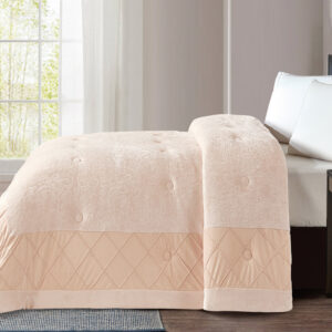 Κουβερτοπάπλωμα υπέρδιπλο από ζακάρ sherpa και φλάνελ, 100% πολυέστερ, μονόχρωμο, με μπορντούρα.