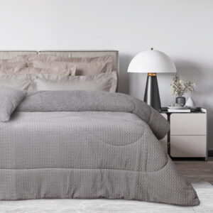 Κουβερτοπάπλωμα υπέρδιπλο φλάνελ, 100% πολυέστερ, μονόχρωμο, με ανάγλυφο σχέδιο και επένδυση προβατάκι sherpa.