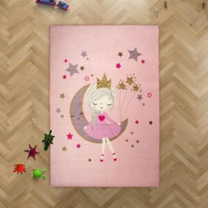 Παιδικό χαλί από ύφασμα φλάνελ,100% πολυέστερ, με αντιολισθητικό υπόστρωμα, εμπριμέ, με φωσφορίζοντα στο σκοτάδι αστεράκια.