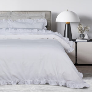 Σετ σεντόνια υπέρδιπλα με μαξιλαροθήκες από ύφασμα βαμβακοσατέν, 205 κλωστών, 100% βαμβακερό, μονόχρωμο, σε χρώμα λευκό, με διακοσμητική βαμβακερή δαντέλα στο πανωσέντονο και στις μαξιλαροθήκες.