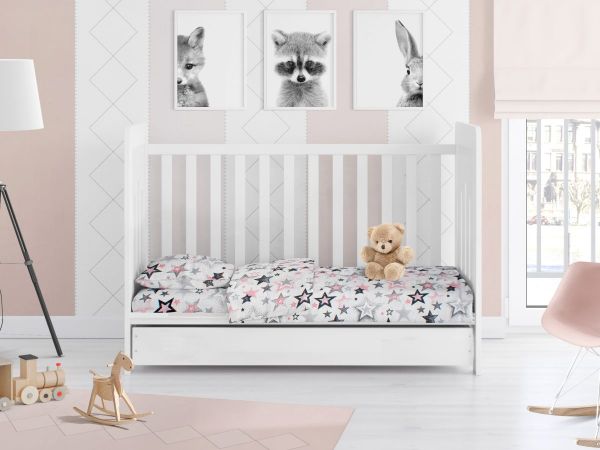 ΠΑΠΛΩΜΑΤΟΘΗΚΗ ΕΜΠΡΙΜΕ bebe Star 122 120Χ160 Grey-Pink Cotton 100%-1915717607312289