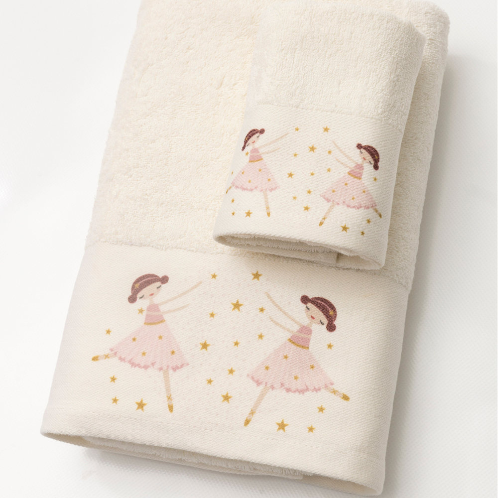 Σετ πετσέτες 2 τεμαχίων, μπάνιου και χειρός, από ύφασμα φροτέ πενιέ, 100% βαμβακερό, μονόχρωμο, εκρού, με ψηφιακή εκτύπωση, σχέδιο olivia.Διατίθεται σε 2 χρώματα.