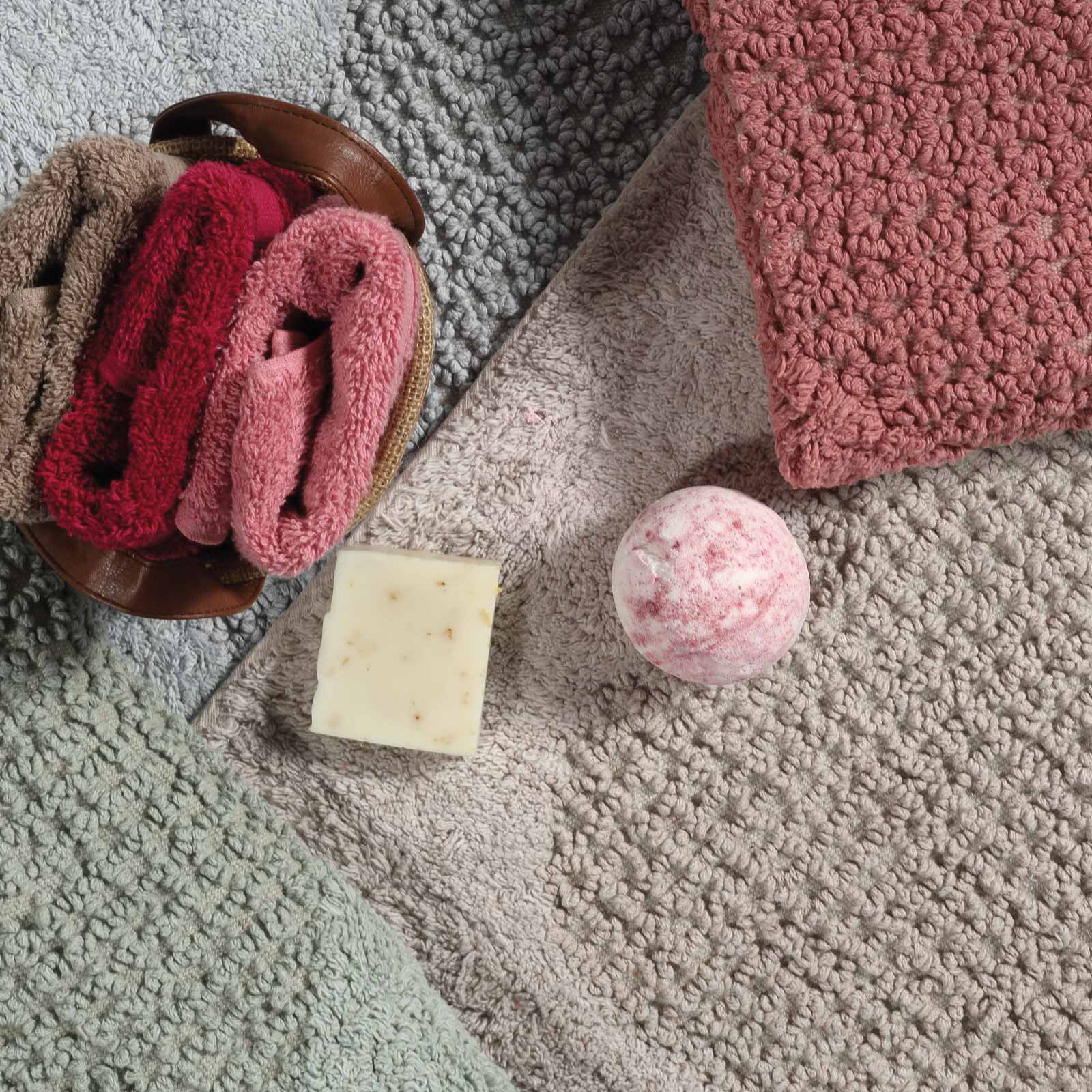 Ταπέτο μπάνιου με ανάγλυφο σχέδιο σε υπέροχες παστέλ αποχρώσεις που ταιριάζουν σε κάθε μπάνιο και καλύπτουν κάθε γούστο. Είναι από 100% βαμβάκι, ιδιαίτερα απαλό, απορροφητικό και ανθεκτικό στη χρήση. Διατίθεται σε διάσταση 60x90cm. Das home…makes your house a home!