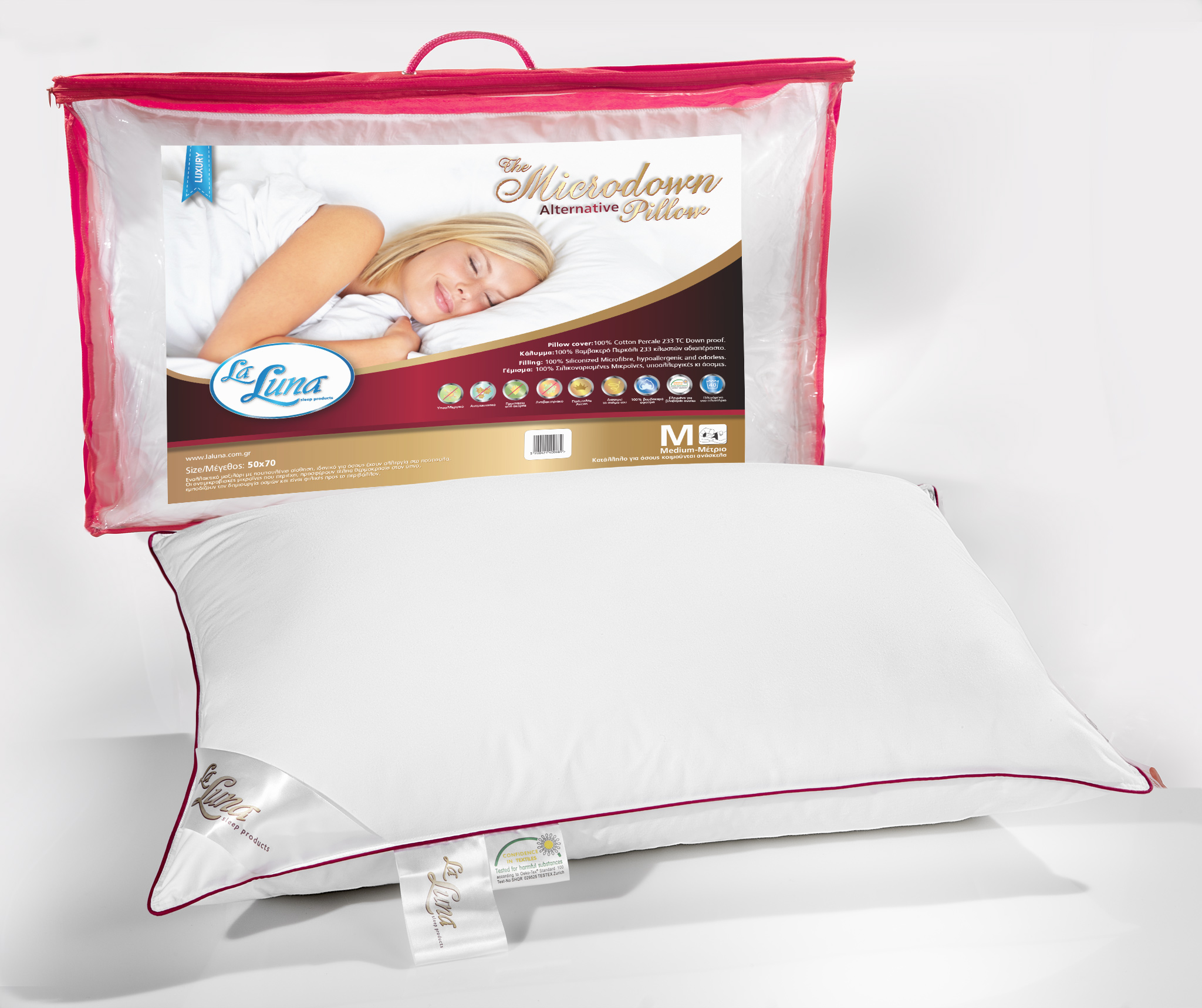 Μαξιλάρι γεμισμένο με εξαιρετικής ποιότητας μικροΐνες. Οι μικροΐνες είναι ένα υλικό μαλακό κι ελαφρύ που σου δίνει την αίσθηση πούπουλου. Είναι αντιμικροβιακές, αντιαλλεργικές κι εμποδίζουν τη δημιουργία οσμών. Φροντίζουν ώστε το μαξιλάρι να έχει την ιδανική θερμοκρασία κατά τη διάρκεια του ύπνου και προσφέρουν μεγάλη άνεση. Διατηρούν το σχήμα τους και είναι φιλικές στο περιβάλλον.