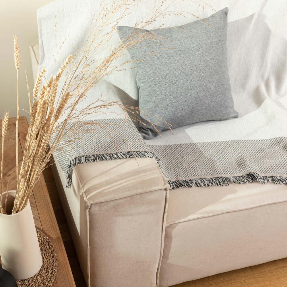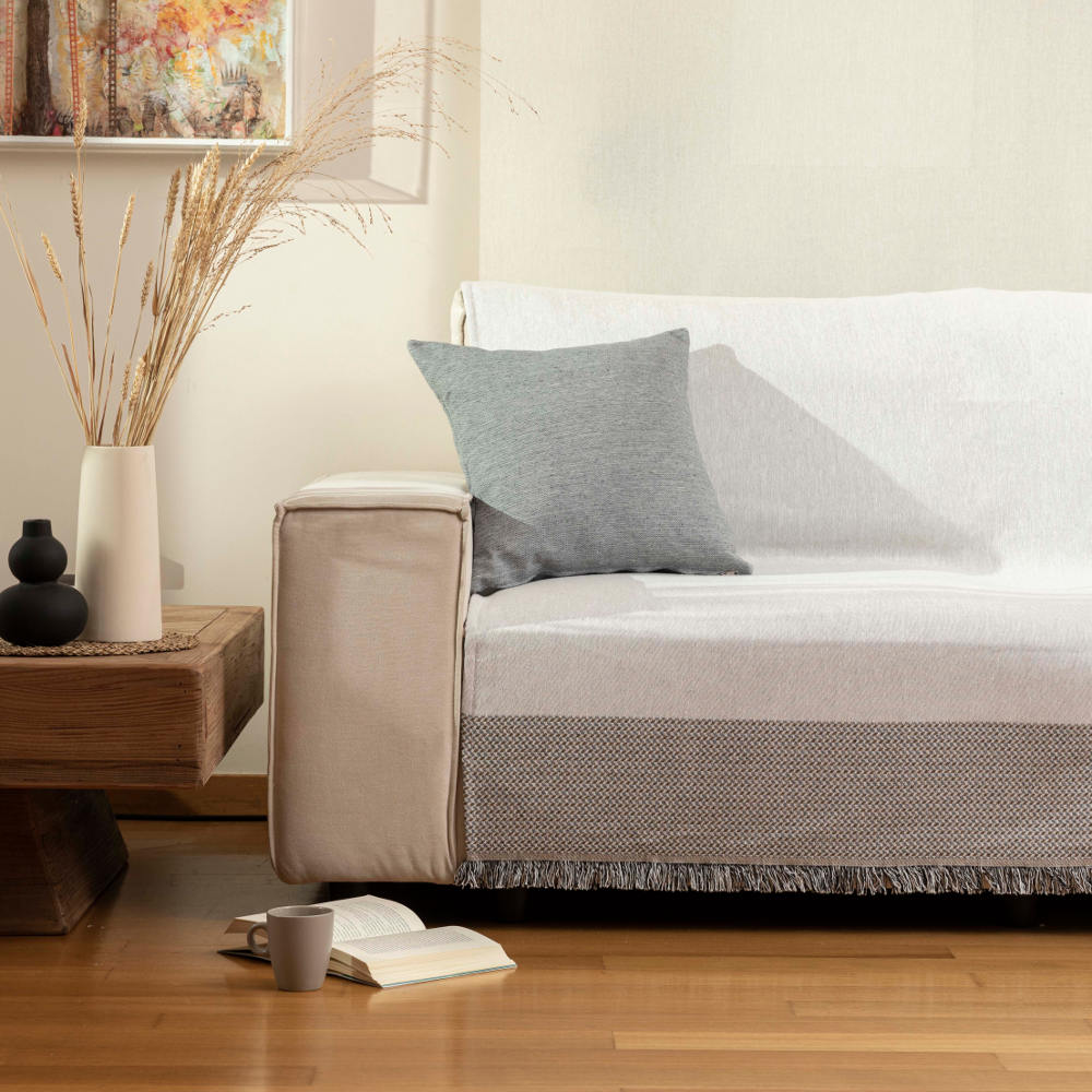Καλοκαιρινό ριχτάρι τριθέσιο, από ύφασμα 100% βαμβακερό,μονόχρωμο με μπορντούρα και κρόσσι. Διαθέσιμο σε 3 διαφορετικά χρώματα.