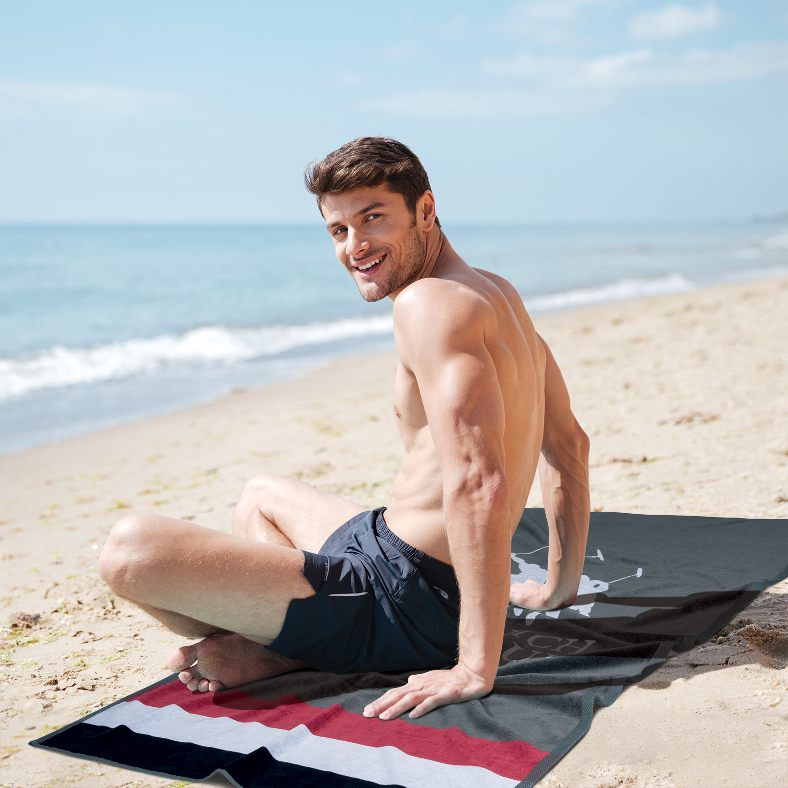 Πετσέτα Θαλάσσης Greenwich Polo Club σε διάσταση 90Χ180εκ. Είναι υποαλλεργική, απαλή, απορροφητική και ανθεκτική στη χρήση. Η σύνθεσή της είναι από 100% βαμβάκι σε ύφανση jacquard και βάρος 400gr/m2. Επιλέξτε Πετσέτες Θαλάσσης Greenwich Polo Club σε μοντέρνα σχέδια και χρώματα για τις εμφανίσεις σας στην παραλία.